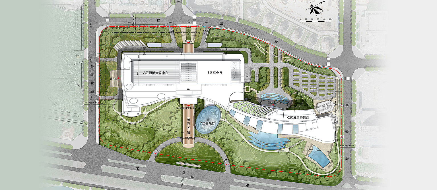 廈門國際會議中心為一類高層建筑,主要功能為會議及宴會建筑,會議功能較少.更無法達到國際峰會的功能使用及視覺感受的要求。改造從入口及落客前廣場開始.梳理現(xiàn)有空間體系.在尊重原有結(jié)構(gòu)及功能布局的基礎(chǔ)上.巧妙的利用原有的結(jié)構(gòu)體系,增設(shè)會議功能,梳理功能動線,以滿足金磚峰會的使用要求。