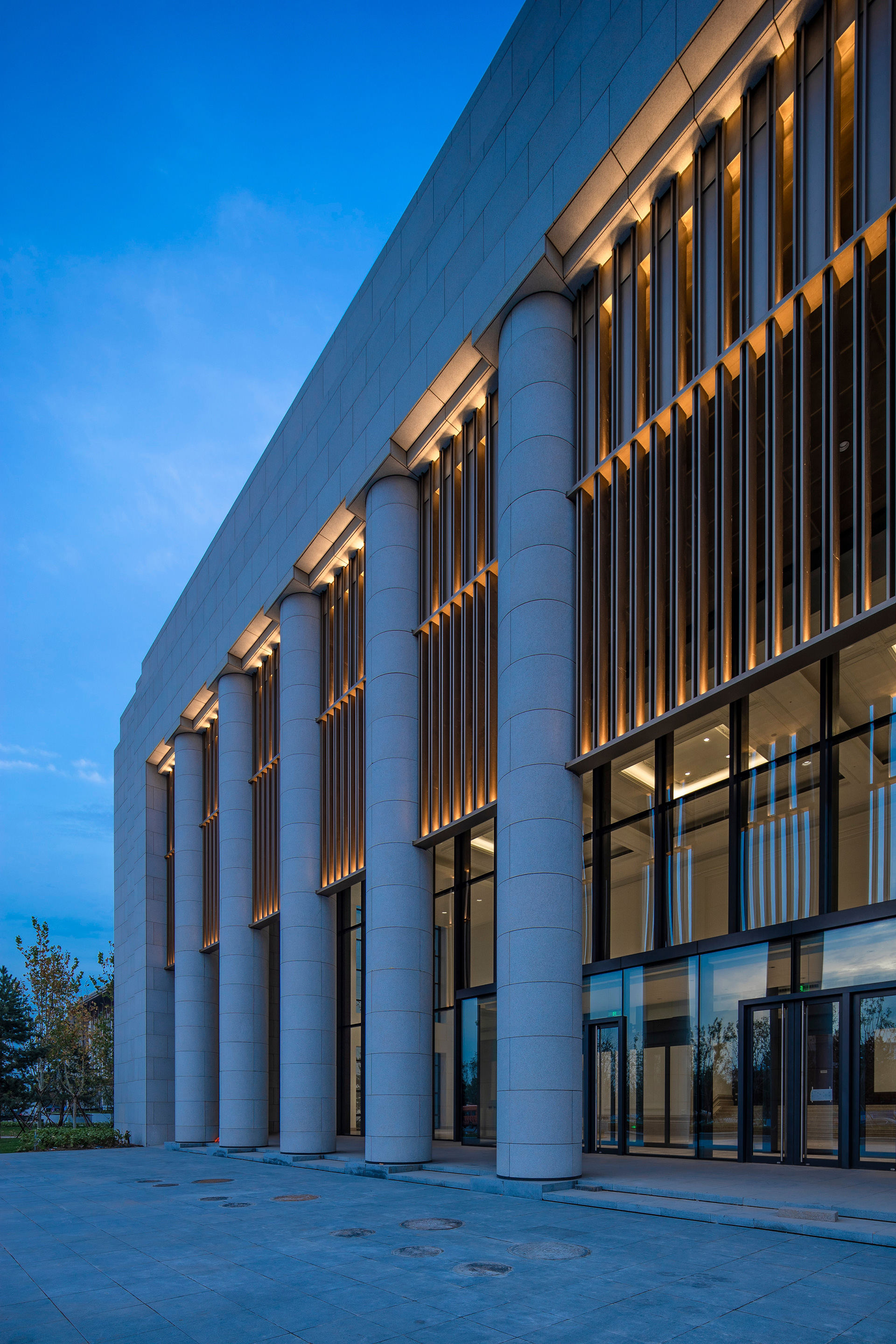 建筑形象傳承了中國傳統(tǒng)建筑屋頂?shù)脑煨?,并進(jìn)行了創(chuàng)新。建筑屋面仍然保持了下凹曲面的形式,但省略了傳統(tǒng)建筑繁復(fù)的細(xì)節(jié),體現(xiàn)了現(xiàn)代建筑的基本特征和時代精神。
