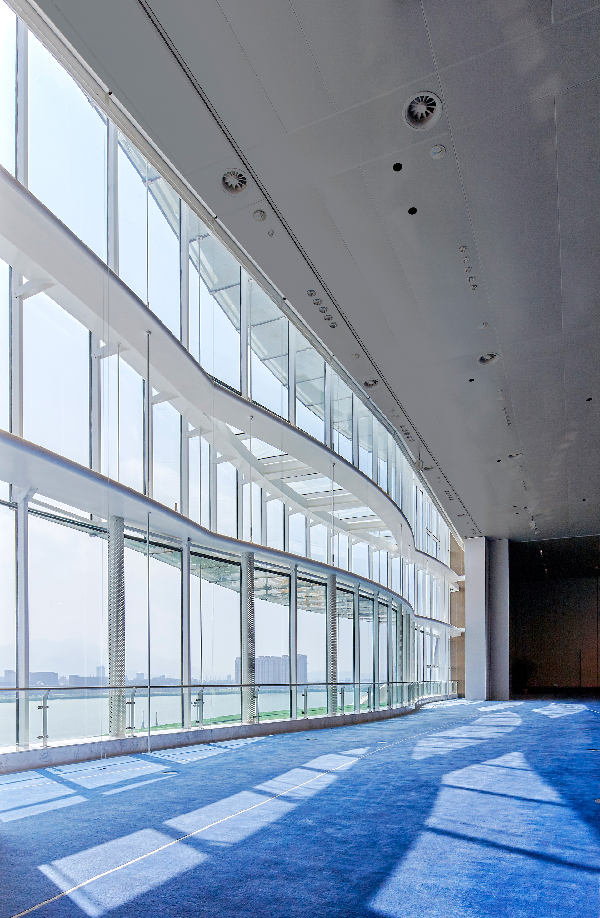本工程作為國家重點項目,需要體現(xiàn)當代數(shù)字科技理念來作為“數(shù)字中國”建設(shè)峰會的永久會址使用,在此為前提的引領(lǐng)概念下,運用現(xiàn)代材料凸顯了地域特色,“數(shù)字福船”在總體造型基礎(chǔ)上呈現(xiàn)出了數(shù)字化建筑語言,建筑在使用過程中借助BIM平臺集成了完整的數(shù)字化三維信息系統(tǒng),并在云計算、物聯(lián)網(wǎng)、大數(shù)據(jù)、人工智能等方面真正打造了科技智慧展館,為建設(shè)科技強國打下了堅實的基礎(chǔ),為“數(shù)字中國”的實現(xiàn)提供了堅實的支撐。