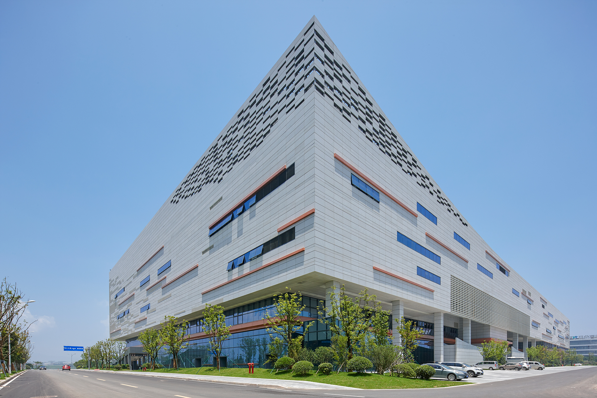 本項目為裝配式建筑,主體結(jié)構(gòu)為全鋼結(jié)構(gòu)(鋼柱、鋼支撐、鋼梁、鋼桁架、樓蓋為壓型鋼板組合樓蓋均為免支撐體系),非承重圍護墻及隔墻材料均采用纖維增強硅酸鹽板,遵循建筑與裝修一體化設(shè)計及施工原則,經(jīng)參數(shù)核算項目裝配率達到了66%,為建筑全壽命周期實現(xiàn),采用BIM技術(shù),解決了項目時間緊、任務(wù)重的高要求設(shè)計及建設(shè)標準,為數(shù)字峰會的順利召開及后期運營提供了有利條件