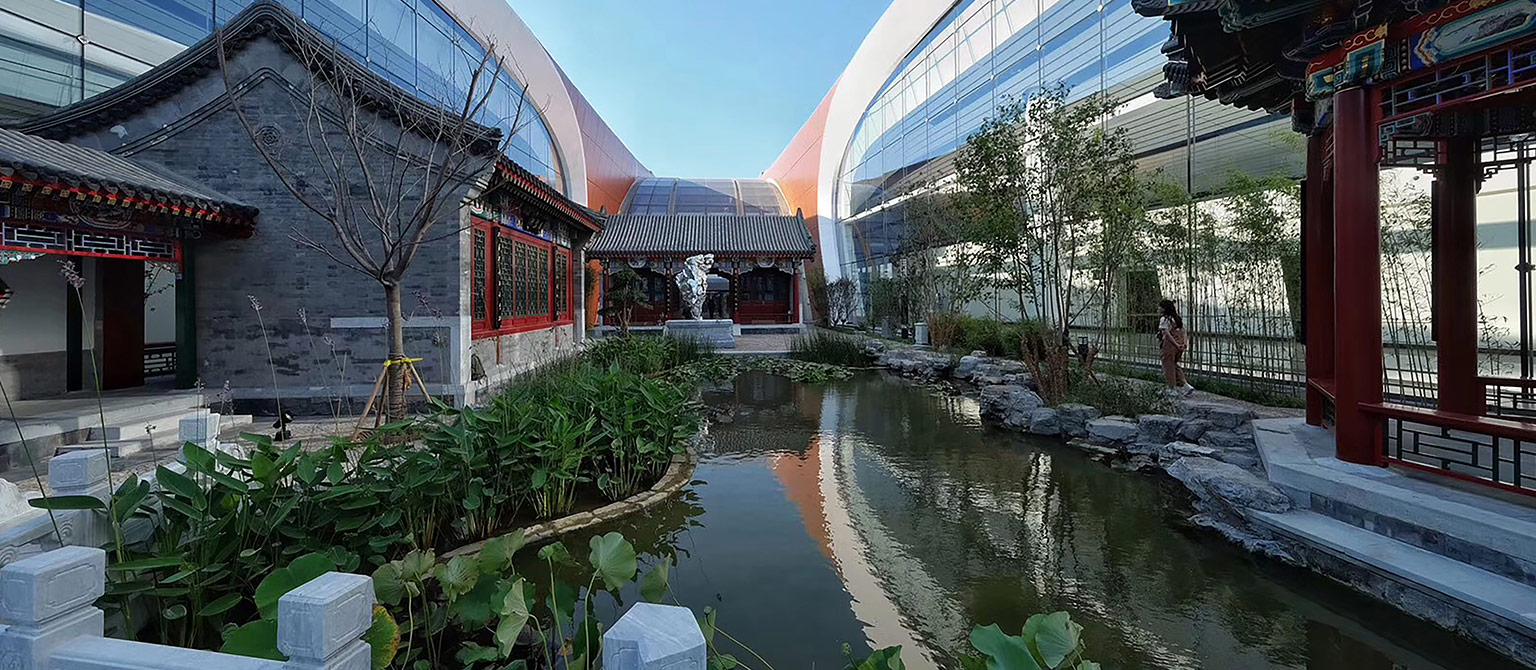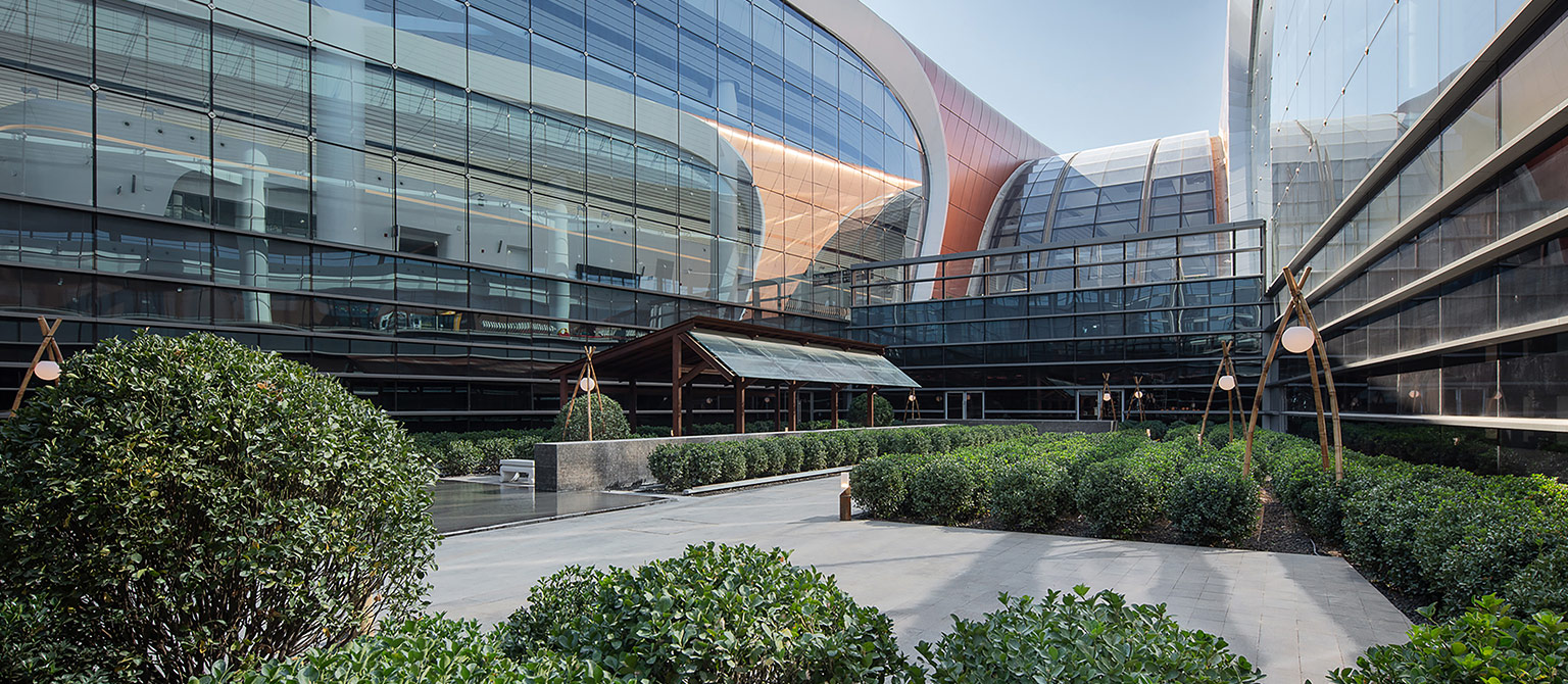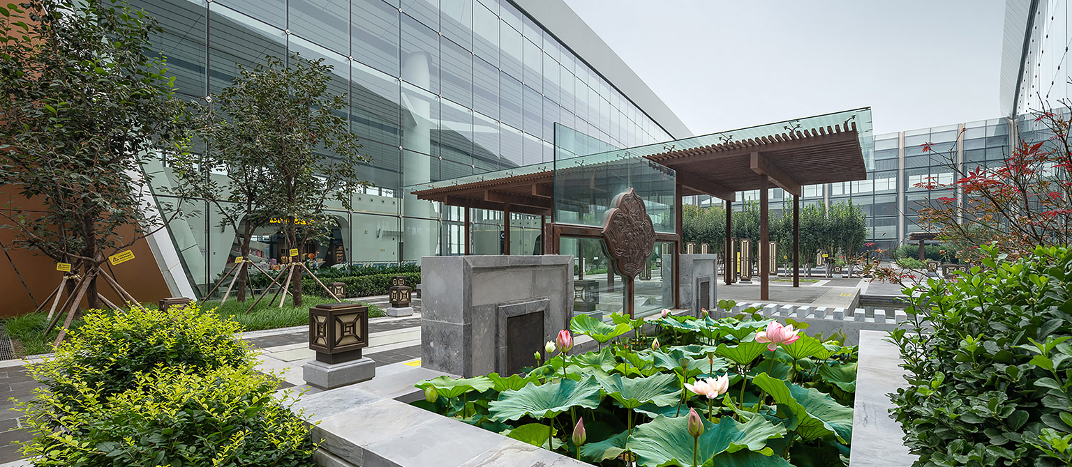 五個庭院分別位于航站樓五個指廊的末端,是四周玻璃幕墻環(huán)閉的內(nèi)庭院環(huán)境,小氣候條件相對苛刻。植物選擇上選用耐性強(qiáng)易維護(hù)的品種。田園瓷園中國園位于航站樓二層三層,是屋面覆土景觀,設(shè)計嚴(yán)格復(fù)核結(jié)構(gòu)荷載以及覆土條件,中國園堆假山建建筑,景觀專業(yè)與結(jié)構(gòu)專業(yè)深度溝通合作,確保設(shè)計完整性和實施性。