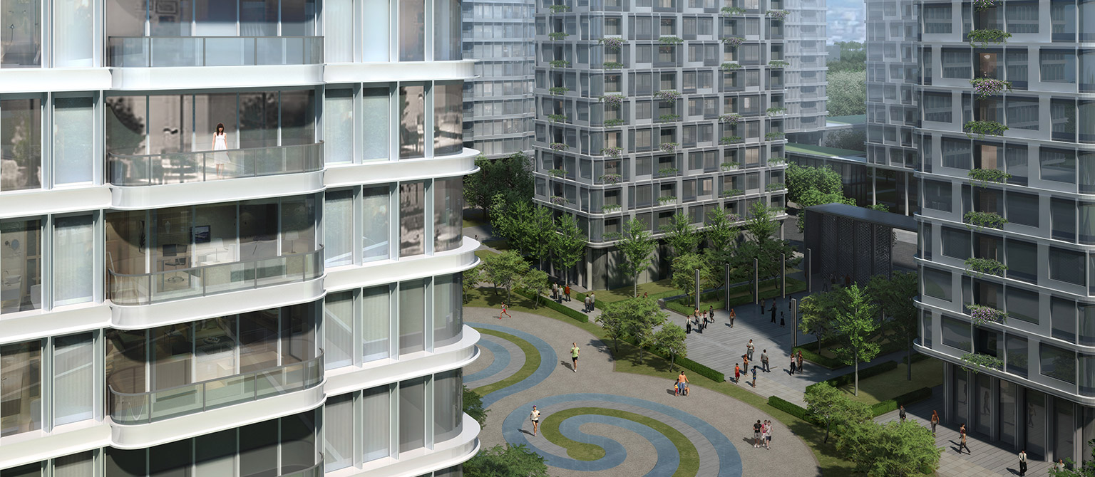 利用立面的風(fēng)格變化,將整個園區(qū)分為三種組團(tuán)類型。 中心綠地廣場采用中國傳統(tǒng)的冰嬉圖意向,在院落的核心空間打造適應(yīng)多種運(yùn)動的共享空間。每個地塊的東西兩側(cè)建筑首層及二層局部架空,將城市空間引入本項目的公共空間,形成線性開放空間,為城市退讓出一片活力共享空間。建筑形體做了圓角處理,改善了方正形體帶來的拘謹(jǐn),更加自由靈動,對城市空間更友好。立面多采用淺色石材、深灰色金屬以及具有紋路的彩釉玻璃等材質(zhì)形成雅致的黑白灰色調(diào),凸顯出中國傳統(tǒng)的書畫意境。屋頂為開放公共空間,通過種植景觀豐富活動空間,改善局部氣候,為城市提供綠色生態(tài)的第五立面,同時屋頂設(shè)置太陽能板實現(xiàn)清潔能源的利用。本項目戶型規(guī)整,南北通透,動靜分區(qū),功能齊備。獨立電梯入戶,增強(qiáng)儀式感。通過裝配式鋼結(jié)構(gòu)實現(xiàn)戶內(nèi)無柱或少柱的靈活空間。增設(shè)無障礙設(shè)施的條件預(yù)留,打造全齡化住宅。以“社區(qū)健康化”為設(shè)計理念,以人的全周期需求為導(dǎo)向,依托大數(shù)據(jù),打造可進(jìn)化、有感知的、交互式開放智慧社區(qū)。