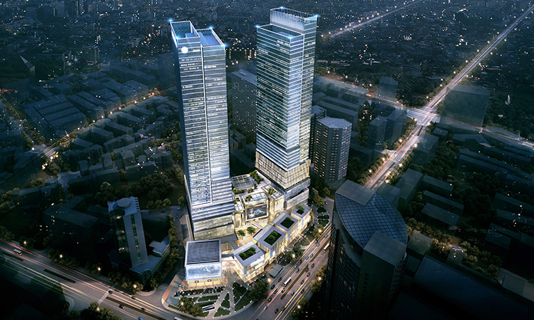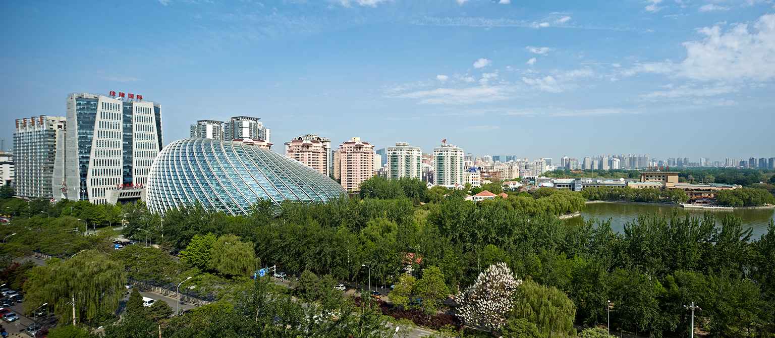 鳳凰中心項目位于北京朝陽公園西南角,占地面積1.8公頃,總建筑面積7.2萬平方米,建筑高度54米。除媒體辦公和演播制作功能之外,建筑安排了大量對公眾開放的互動體驗空間,以體現(xiàn)鳳凰傳媒獨特的開放經營理念。建筑的整體設計邏輯是用一個具有生態(tài)功能的外殼將具有獨立維護使用的空間包裹在里面,體現(xiàn)了樓中樓的概念,兩者之間形成許多共享形公共空間。 在東西兩個共享空間內,設置了連續(xù)的臺階、景觀平臺、空中環(huán)廊和通天的自動扶梯,使得整個建筑充滿著動感和活力。此外,建筑造型取意于“莫比烏斯環(huán)”,這一造型與不規(guī)則的道路方向、轉角以及和朝陽公園形成和諧的關系。連續(xù)的整體感和柔和的建筑界面和表皮 ,體現(xiàn)了鳳凰傳媒的企業(yè)文化形象的拓撲關系,而南高北低的體量關系,既為辦公空間創(chuàng)造了良好的日照、通風、景觀條件,避免演播空間的光照與噪音問題,又巧妙的避開了對北側居民住宅的日照遮擋的影響。