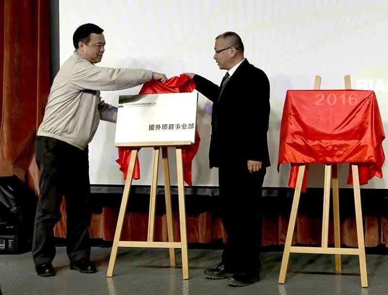 2016年1月BIAD副總經理陳杰(左)為援外項目事業(yè)部主任張子軍授牌