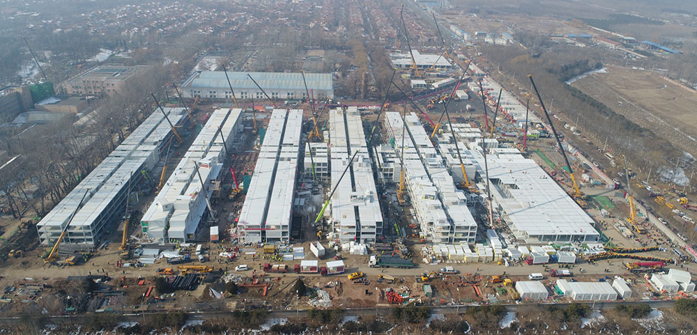 在小湯山項(xiàng)目工程現(xiàn)場(chǎng),3層的集裝箱建筑正在緊鑼密鼓地建設(shè)之中,能夠滿(mǎn)足所有床位的需求。包括食堂、換熱站、污水處理站、洗消間等在內(nèi)的附屬設(shè)施,將為醫(yī)院提供完善的配套服務(wù)。B區(qū)康復(fù)中心改建項(xiàng)目已基本完成,將提供先進(jìn)的負(fù)壓隔離病房。