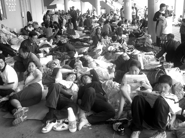 在經(jīng)歷了主震及上萬次余震后,政府開始組織群眾撤離九洲體育館,重建家園……