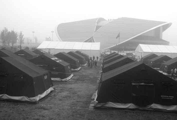2008年5月12日中國汶川發(fā)生特大地震,無數(shù)建筑倒塌,滿目瘡痍,幾十萬人無家可歸。位于四川省綿陽市的九洲體育館在大震中屹立不倒,成為受災群眾的臨時安置場所,在隨后上萬次余震中,體育館主體結(jié)構(gòu)完好,先后守護受災群眾10萬余人,被災民譽為大震中的“生命綠洲”。