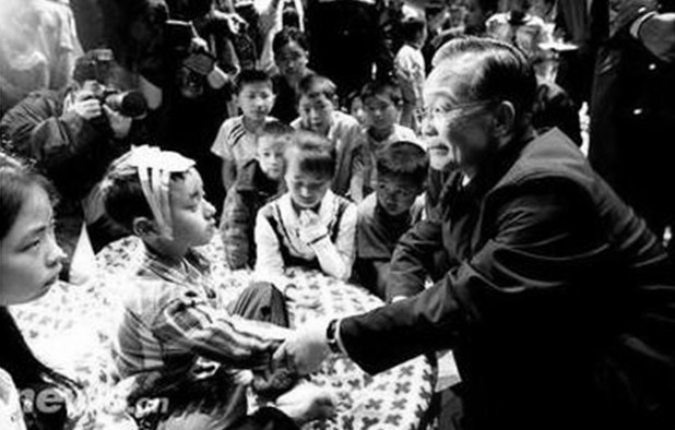 溫家寶總理在九洲體育館安慰受傷兒童