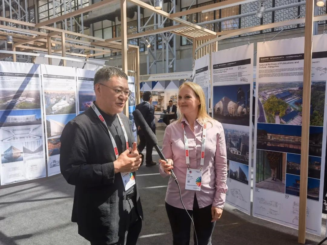 展覽期間,北京建院董事長(zhǎng)徐全勝接受了大會(huì)官方媒體的采訪,表達(dá)了對(duì)世界建筑師大會(huì)成功召開的祝賀,以及對(duì)大會(huì)組委會(huì)的感謝。