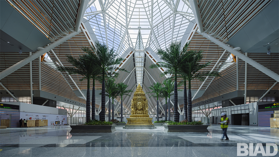 2018年,北京建院參加了吳哥國(guó)際機(jī)場(chǎng)設(shè)計(jì)招標(biāo),經(jīng)過專業(yè)評(píng)選及柬政府審閱,最終以原創(chuàng)方案中標(biāo)。設(shè)計(jì)團(tuán)隊(duì)后用1年時(shí)間完成了方案細(xì)化及主要設(shè)計(jì)圖紙,2019年航站樓正式打下第一根樁。2020年,突如其來的新冠疫情給項(xiàng)目進(jìn)展帶來了極大的挑戰(zhàn)。設(shè)計(jì)團(tuán)隊(duì)勇于擔(dān)當(dāng),攻堅(jiān)克難,持續(xù)服務(wù)。通過標(biāo)準(zhǔn)化的設(shè)計(jì)有效控制了建筑質(zhì)量、縮短了建設(shè)工期,經(jīng)過各方不懈努力,吳哥國(guó)際機(jī)場(chǎng)今天如期通航。
