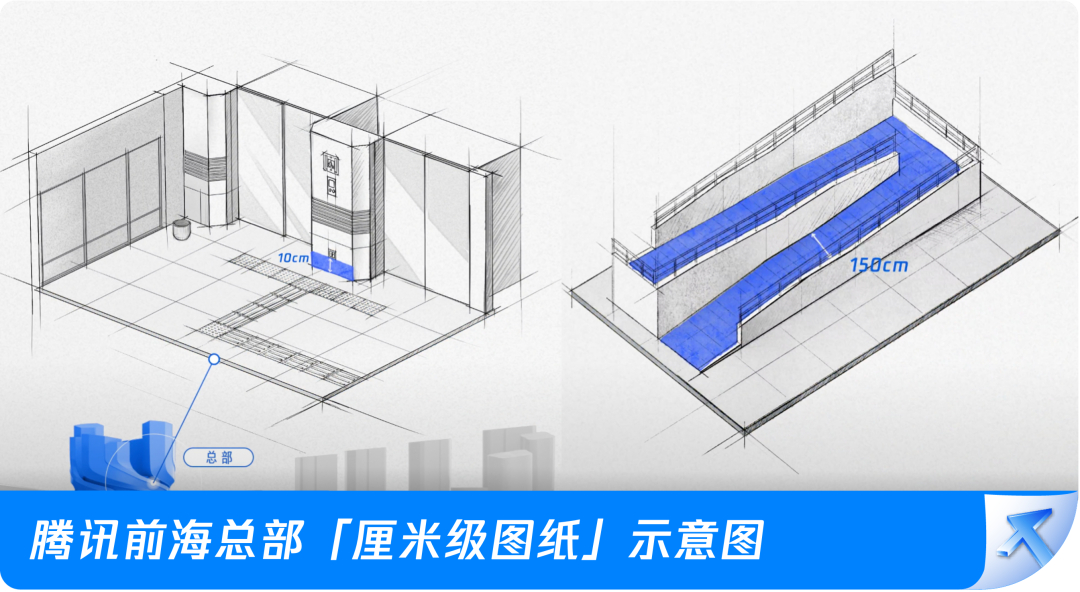 正在規(guī)劃的騰訊深圳前海新總部,對(duì)外公開了建設(shè)「圖紙」......中的幾厘米。分別是 150cm、150cm、45cm、10cm、1.3cm。這個(gè)厘米級(jí)項(xiàng)目,它們代表了前??偛拷ㄔO(shè)里的無障礙“小心思”,為的是讓每一位訪客都能在園區(qū)各處暢行無阻,享受全齡友好的無障礙服務(wù)體驗(yàn)。