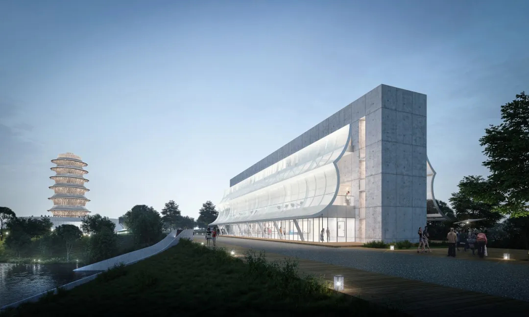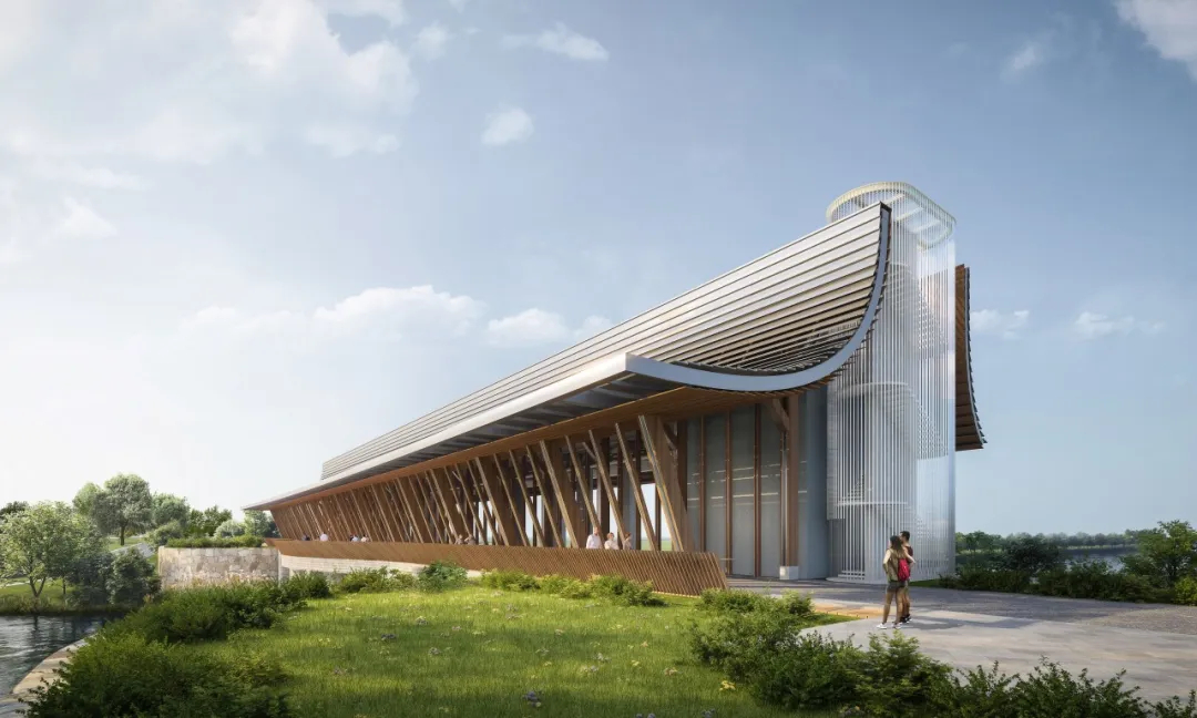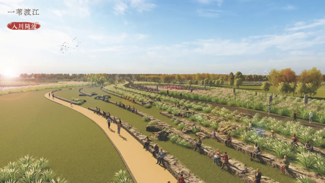 在水利樞紐改擴(kuò)建的過程中,如何以水利建筑與景觀自然相結(jié)合的共存方式,改善公共空間與現(xiàn)存水利建筑之間的聯(lián)系,做到既滿足防洪規(guī)劃要求,又能夠創(chuàng)造高品質(zhì)的濱水景觀氣質(zhì),真正為公眾服務(wù),是設(shè)計(jì)團(tuán)隊(duì)需要研究回答的課題。與恢弘的人工水利設(shè)施相比,淶河樞紐的建筑與景觀尺度更大、更自然,水利堤防就是九曲畫卷的畫軸,景觀就是層層鋪設(shè)的底色,建筑就是畫中的點(diǎn)綴,三者共同構(gòu)成一幅絕美壯觀的山水畫卷。通過整理岸線及林相(森林的外形),營造濱河林地、葦蕩蘆海等植物空間,注入郊野休閑、水利科普功能,打造人與自然和諧輝映之所。同時希望借容城古八景重塑“白溝曉渡”的歷史風(fēng)貌,通過九個新節(jié)點(diǎn)的引入打造雄安新地景,多自然、少人工,形成“錦瑟蘆堤,水流箏鳴”的山水畫卷。