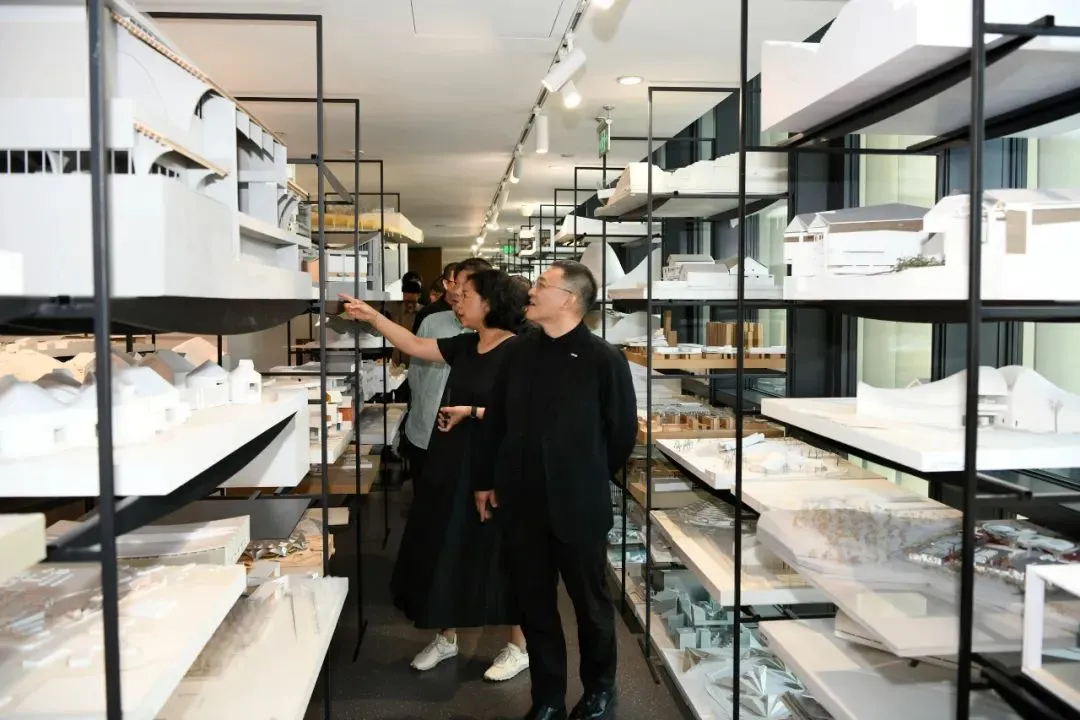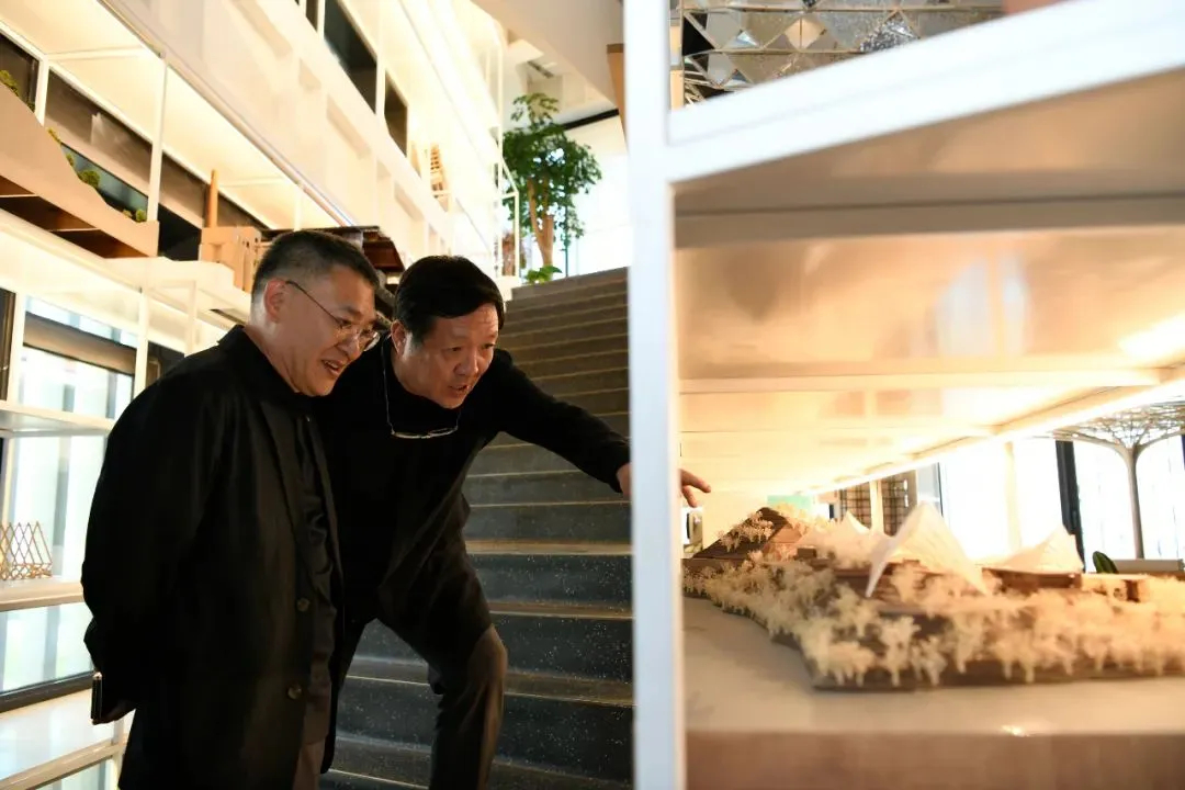 隨后,北京建院訪問團隊參觀了勝景幾何設(shè)計研究中心和本土設(shè)計研究中心在工作空間內(nèi)的作品展示,勝景幾何中心張音玄總建筑師和本土設(shè)計研究中心任祖華主任帶領(lǐng)參觀并做深入導(dǎo)覽。