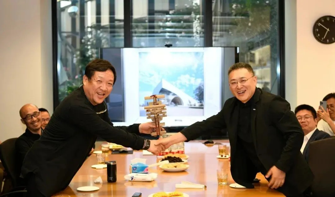 觀展之后,兩院建筑師團隊進行了座談交流。徐全勝董事長提出,展覽呈現(xiàn)的本土設(shè)計理念代表了當前建筑行業(yè)的前沿水平,希望通過參觀學(xué)習(xí),進一步交流建筑創(chuàng)作心得,促進學(xué)科發(fā)展。
