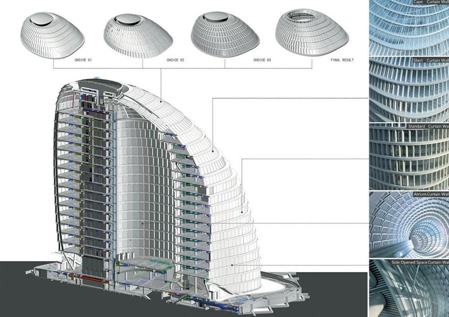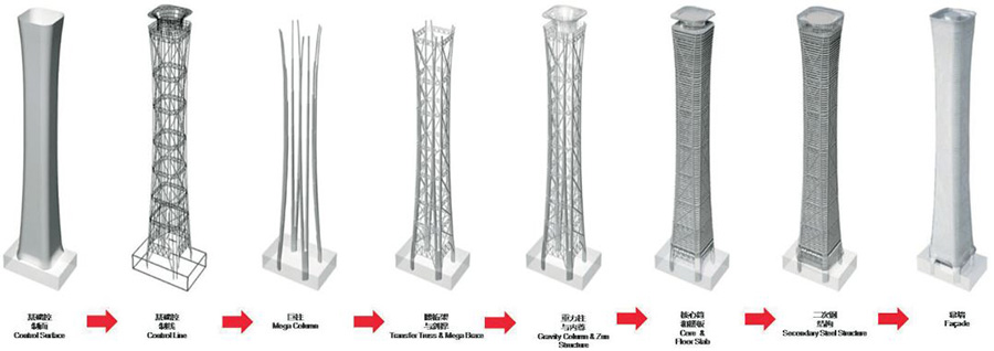 中信大廈項目總建筑面積為43.7萬平方米,是北京新時代的標(biāo)志。建筑造型靈感來源于中國傳統(tǒng)禮器"尊",具有收腰的造型構(gòu)成了它的獨(dú)特性。針對Z15的特點(diǎn)利用數(shù)字工具建立多專業(yè)、多部門協(xié)同工作的建筑信息平臺,高效、準(zhǔn)確、科學(xué)地解決實(shí)際工程中的技術(shù)難題,達(dá)到建筑整體性能的協(xié)調(diào)統(tǒng)一。