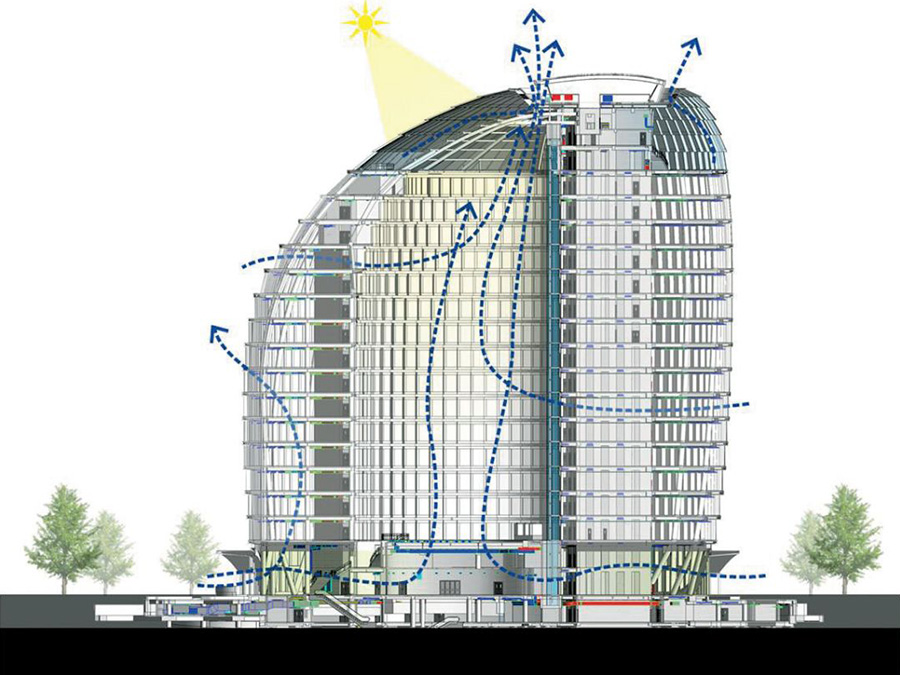 但是隨著科技的進(jìn)步,特別是系統(tǒng)科學(xué)的發(fā)展,在科技界產(chǎn)生了一種復(fù)雜性的理論,它支持一種新的世界觀——這個世界是一個動態(tài)的、不可分割的龐大整體,整體中的各部分是相互聯(lián)系的。基于這種復(fù)雜性的思維,我們把建筑看成一個生命體,它有很多獨(dú)立的子系統(tǒng)來構(gòu)成一個動態(tài)的整體。