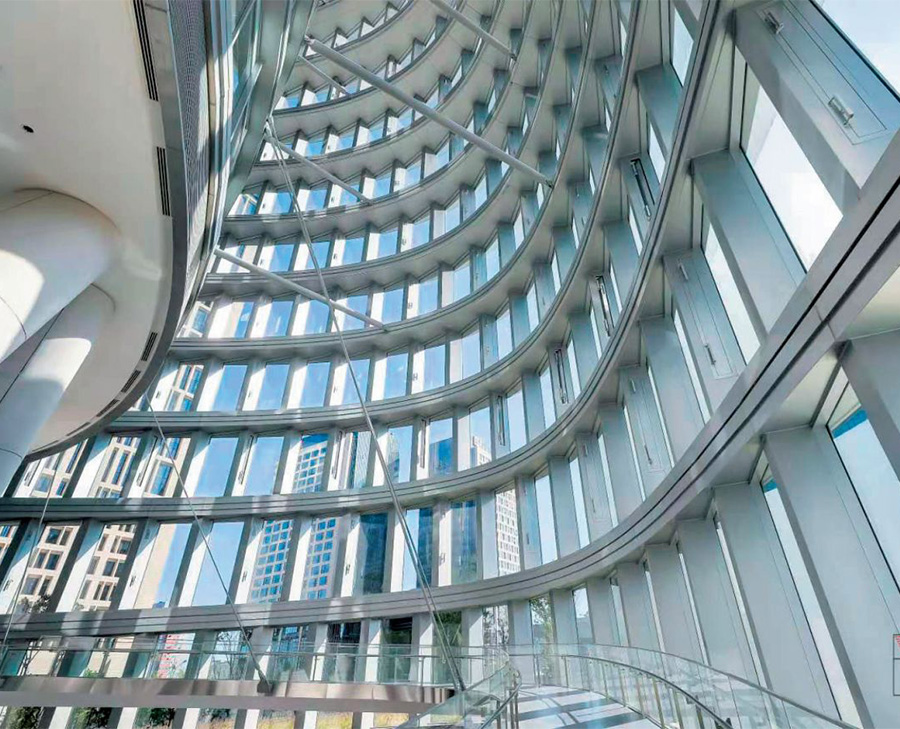 內(nèi)外幕墻均通過設(shè)計手法,諸如鋸齒幕墻、蓑衣幕墻等方式,通過錯位和折疊來消化誤差,提升施工精度同時也提升了建筑表現(xiàn)力 。