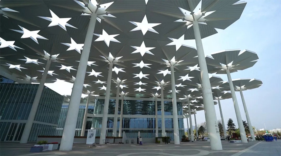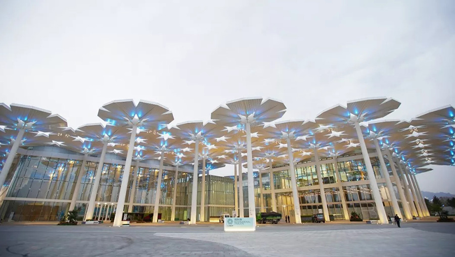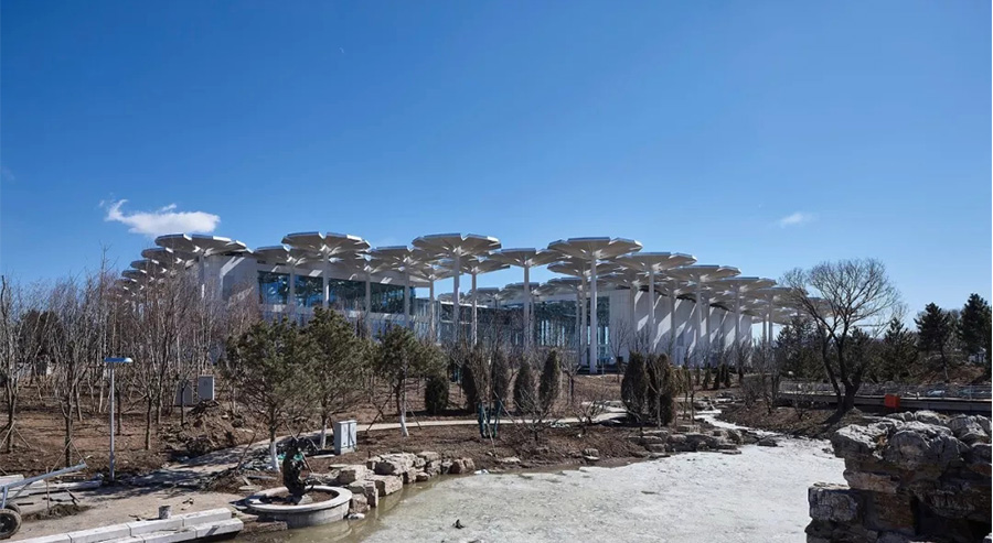 2019年北京世園會國際館由全國工程勘察設(shè)計大師、北京市建筑設(shè)計研究院股份有限公司總建筑師胡越領(lǐng)銜設(shè)計,以“花傘”為元素、“花?!睘橹黝}、“長城灰”為色調(diào),秉承“以人為本”、“綠色節(jié)能”、“可持續(xù)發(fā)展”的設(shè)計理念,打造出一座與周邊環(huán)境和諧共生,既滿足展會需求、又滿足會后使用的國際館。