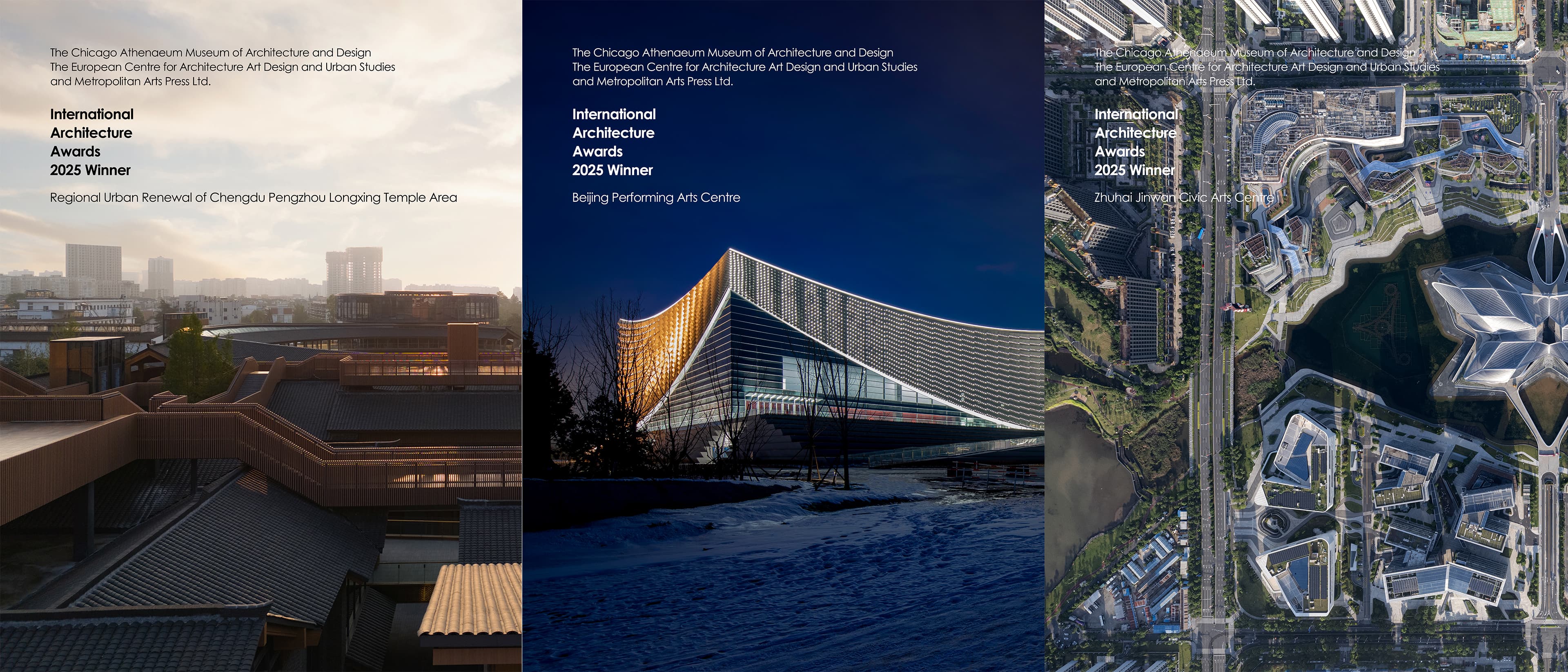 由北京市建筑設(shè)計研究院股份有限公司設(shè)計的北京藝術(shù)中心、成都彭州龍興寺區(qū)域城市更新、金灣航空城市民藝術(shù)中心榮獲2025年IAA國際建筑獎。