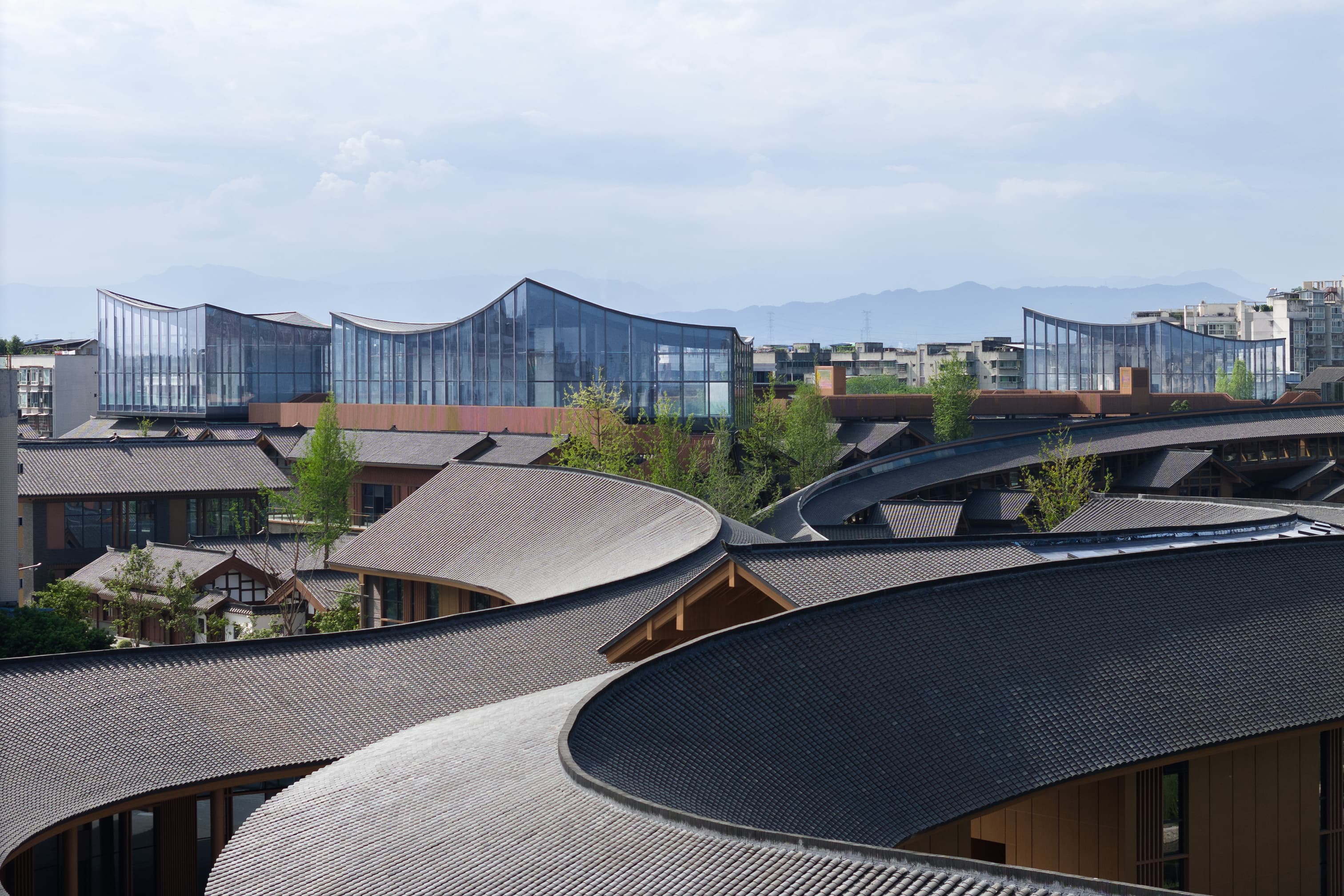 成都彭州龍興寺區(qū)域城市更新項目由北京建院BIAD-ASA筑景工作室設(shè)計,成都彭州龍興寺區(qū)域城市更新項目位于成都彭州市中心城區(qū),因區(qū)域內(nèi)有一座千年古寺——龍興寺而得名,總建筑面積約15萬平方米,功能主要包括商業(yè)、文化、酒店、民宿等。設(shè)計希望通過表現(xiàn)城市的空間意象來還原城市特征:提取中國傳統(tǒng)城市空間中“十方叢林”“坡屋頂”與“天際線”的意象與建筑相結(jié)合,并將重要的步行公共空間與景觀設(shè)計進行立體化融合,從而將現(xiàn)代功能的“大空間”轉(zhuǎn)化為具有傳統(tǒng)形象和宜人尺度的“小空間”,實現(xiàn)“傳統(tǒng)空間的現(xiàn)代表達”。