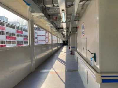 例如,在功能及配套設(shè)施方面,本次新建病區(qū)采用了三層、間距18米的集裝箱結(jié)構(gòu),同時(shí)配套設(shè)置了員工餐廳、急救車洗消、被服洗消、垃圾消毒等完整的配套功能,還規(guī)劃了員工集中轉(zhuǎn)運(yùn)大巴車停留區(qū),獨(dú)立開(kāi)辟了行政、武警、后勤、指揮中心等專用區(qū)域。